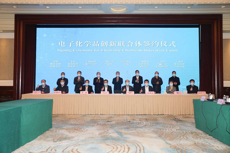 华东理工大学是上海电子化学品创新研究院的承建单位,也是上海电子化学品创新联合体的秘书长单位。会上,华东理工大学与上海化工区、上海华谊(集团)公司、上海市计量测试技术研究院等单位签署“电子化学品创新联合体”协议。