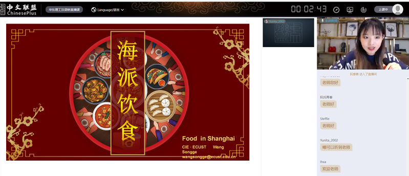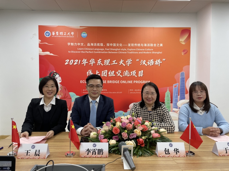 1月3日下午,由教育部中外语言交流合作中心主办,华东理工大学国际教育学院承办的2021年“汉语桥”线上团组交流项目“学魅力中文,品海派底蕴,探中国文化——发现传统与海派融合之美”成功举行开营仪式。我校国际交流合作处副处长李霄鹏、国际教育学院副院长包华、汉语教学中心副主任于涛、“汉语桥”项目组全体教师和来自俄罗斯、印尼、韩国、越南等23个国家的187名学员相聚云端,通过“中文联盟”平台在线上参加了开营仪式。仪式由汉语教学中心王晨老师主持。