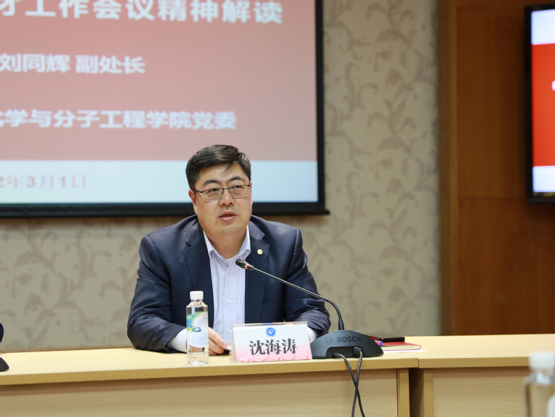 沈海涛在总结中指出,机关和化学与分子工程学院的教职工要抓住先学一步的机遇,深刻学习领会中央人才工作会议精神,为我校即将召开的人才工作会议统一思想、提高认识。沈海涛强调,机关党支部要主动结合业务,在人才工作的政策制订、人才成长的引导支撑、人才生活的保障服务、未来人才的培养改革、海外人才的吸引合作等方面做好相关政策落实,努力建设让党委放心、让师生满意的模范机关,助力学校“双一流”建设与学校人才工作高质量发展。