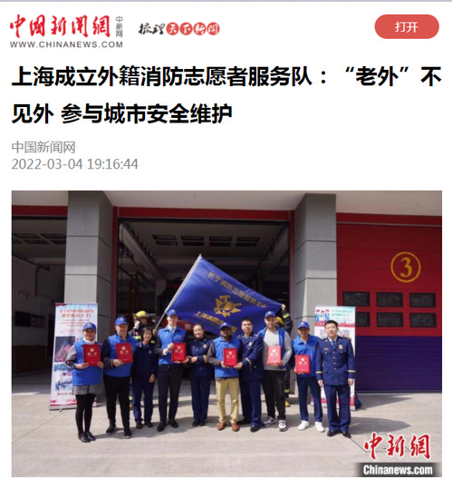 无独有偶,3日,上海长宁区的外籍消防志愿者服务队成立,并开展了首次“跨国消防演练”。