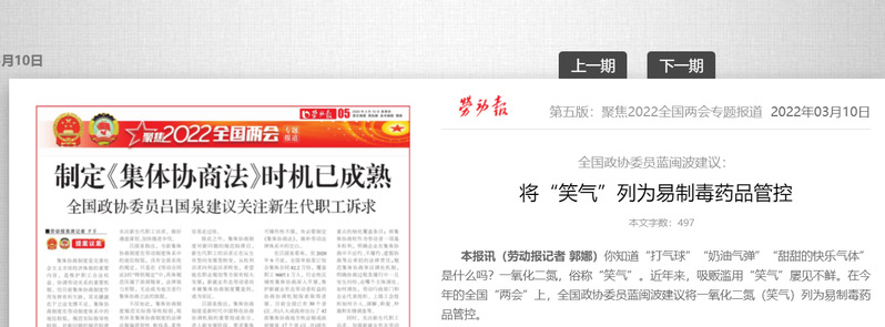 因此,蓝闽波建议,将一氧化二氮(笑气)列入易制毒管理,并根据相关管理要求对生产、经营、运输、存储、使用及处置等环节进行全生命周期管控;严格控制在正常医疗麻醉、食品添加及科研等领域的使用;全面排查涉及笑气的生产、经营及使用行业,以及销售途径和使用范围。