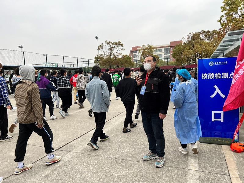 作为学生党员,体育学院2021级硕士研究生万杰积极报名参与了志愿服务,协助奉贤校区老师高效有序做好核酸检测的组织工作。此外,他还组织参与了“口罩劝导小分队”,在用餐取餐高峰期,提醒同学们戴好口罩、保持安全距离,守秩序、不拥挤,一起筑起校园疫情防控的坚强堡垒。