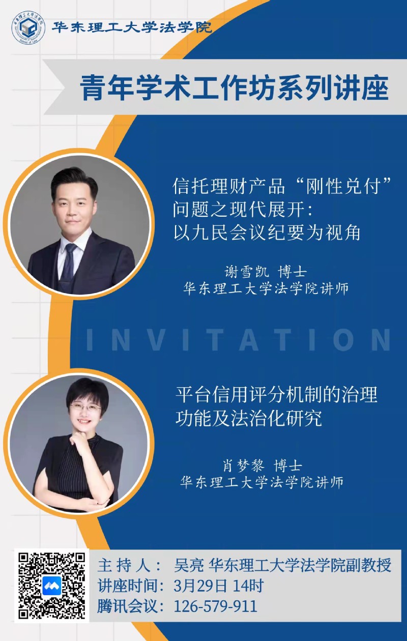 谢雪凯博士,华东理工大学法学院讲师; 肖梦黎博士,华东理工大学法学院讲师