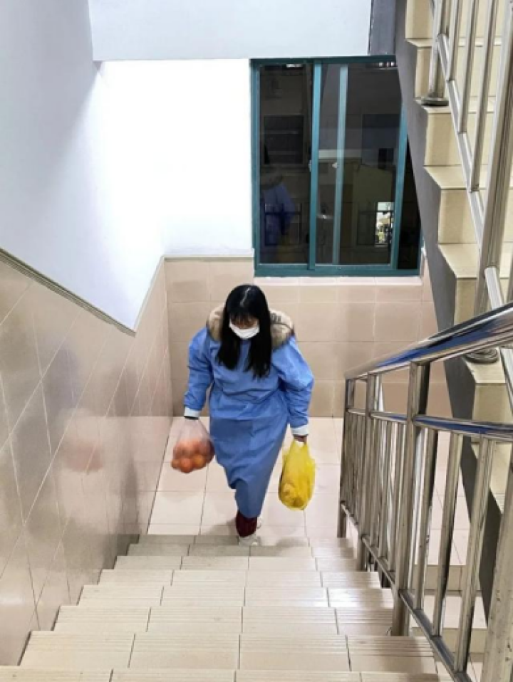 疫情严峻,但是宿舍楼里的同学们都能积极合作,一起面对。早上很早起床给同学们送饭,为了不打扰大家休息,决定请同学们在门口放一把椅子,然后把早饭放在椅子上。虽然当晚只是在群里提了一句,但在第二天就看见门口都整齐地放了一把椅子,大家高效配合工作的样子真的很棒。每次送餐到门前,同学们都会积极出门迎接,不忘说一句“谢谢”,这既是对我们工作的肯定,也让我感受到自己做的事是真切地帮助到大家,是与大家一起合作抗击疫情。很感谢同学们的配合,感谢老师总是及时出现解决同学们的问题,感谢宿管阿姨的关怀,也感谢后勤工作人员总是能够风雨无阻地将热腾腾的饭菜送到宿舍楼下。