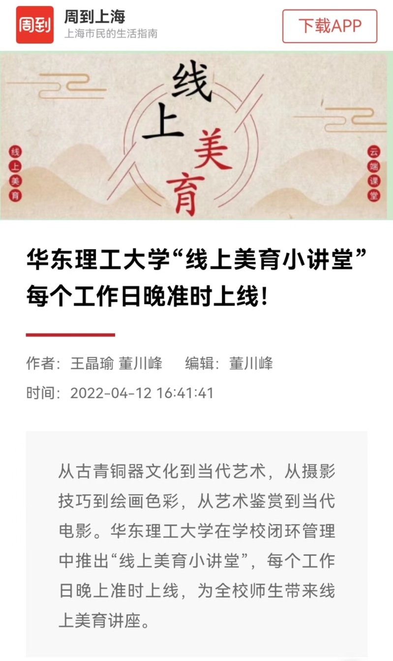 【周到上海】华东理工大学“线上美育小讲堂”每个工作日晚准时上线!
