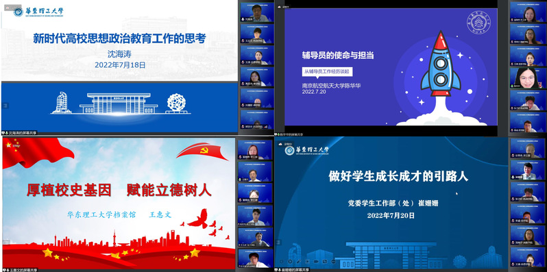 为帮助新进辅导员适应岗位要求、明确岗位职责、掌握工作技能、提高育人能力,7月18日至20日,学校在线上举办了2022年新进辅导员入职培训。首批7名“汇贤计划”辅导员与6名社会招聘辅导员参加了培训。