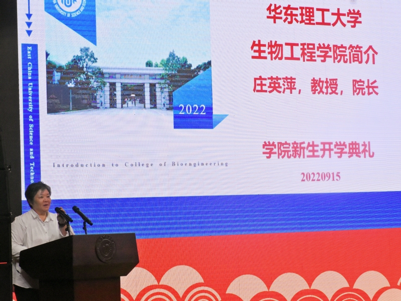 庄英萍详细介绍了学院情况。从1955年筹建全国第一个抗生素制造工学专业,到1980年设立国内最早的生化工程专业,到2015年获批全国第一个生物工程一级学科,再到2020年成立省部共建上海生物制造技术协同创新中心,生物工程学院依托深厚学科底蕴、雄厚的科研和人才资源,面向生物工程创新发展需求,聚焦重大工程、技术与科学问题,培养高层次复合型领军人才。她寄语2022级新生:崭新的大学生活已经拉开帷幕,希望同学们立鸿鹄志、做奋斗者,全身心地投入到学习中,注重培养自身综合能力,努力成为立大志、明大德、担大任、成大才的时代新人。