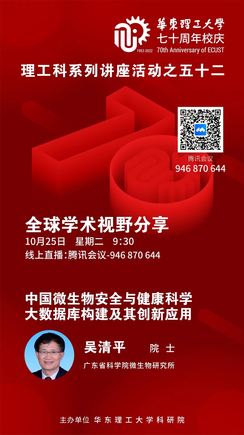 70周年校庆理工科系列讲座活动之院士讲坛——中国微生物安全与健康科学大数据库构建及其创新应用