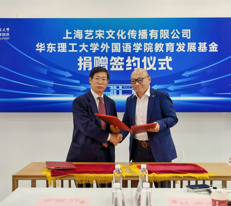 张正军和秦刚代表校企双方签订了捐赠协议。据悉,艺宋文化传播首期无偿向外语学院教育发展基金捐赠人民币10万元,主要用于支持外语学院开展日本文化交流和日语教育研究工作。