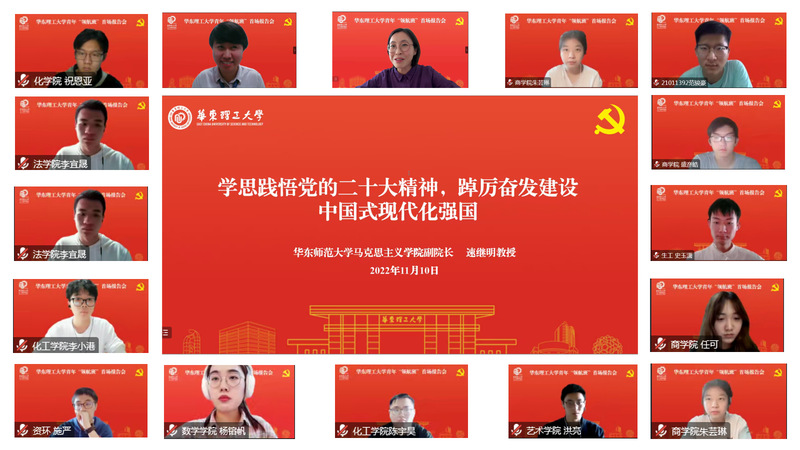 为深入学习宣传贯彻党的二十大精神,培养一批党的创新理论的传承者、宣传者和践行者,12月1日,华东理工大学第一期“领航班”开班仪式在奉贤校区敬贤堂举行。校党委组织部、党委学生工作部(处)、校团委等部门相关负责人出席本次开班仪式。会议由党委学生工作部(处)副部(处)长征春秀主持。