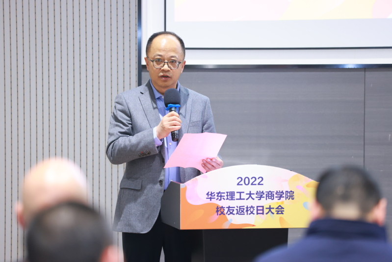 当天下午,商学院2022年度校友返校日大会通过“线上+线下”模式与全球华理商院人见面。随着疫情的稳定,本次活动邀请部分校友亲临现场。广大师生校友、社会各界人士通过网络平台同步收看,总观看量达1.61万人次。商学院副院长楼高翔主持大会。