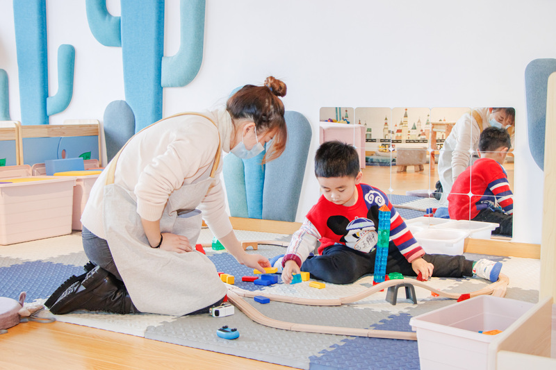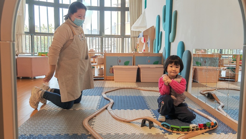 齐齐所在的90平方米宝宝屋,是全区首批6个街道、10个服务站点之一,本月起刚刚试运行。目前名额已被报满,达到了每屋10个宝宝的上限。按每5个宝宝至少配1位老师的标准,这边每天3位老师可算“高标高配”。