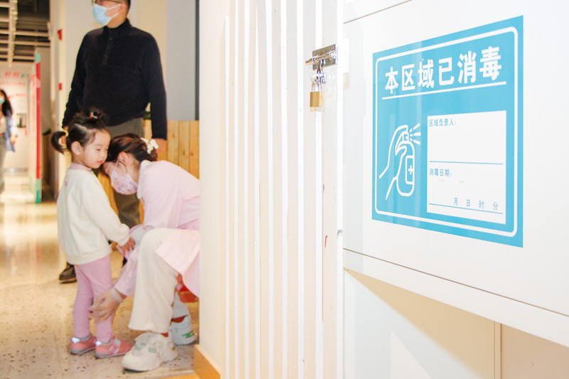 疫情之下,家长十分关切宝宝屋的健康安全。保健老师闵胜钱正在使用经过蒸汽消毒的“熟毛巾”擦拭小餐桌,她告诉记者,上岗前她接受培训,就掌握了桌面消毒“三步法”。对于非餐饮用桌,在普通清洁之后,用含氯抹布再清洁,20分钟后还要通过清水脱氯。