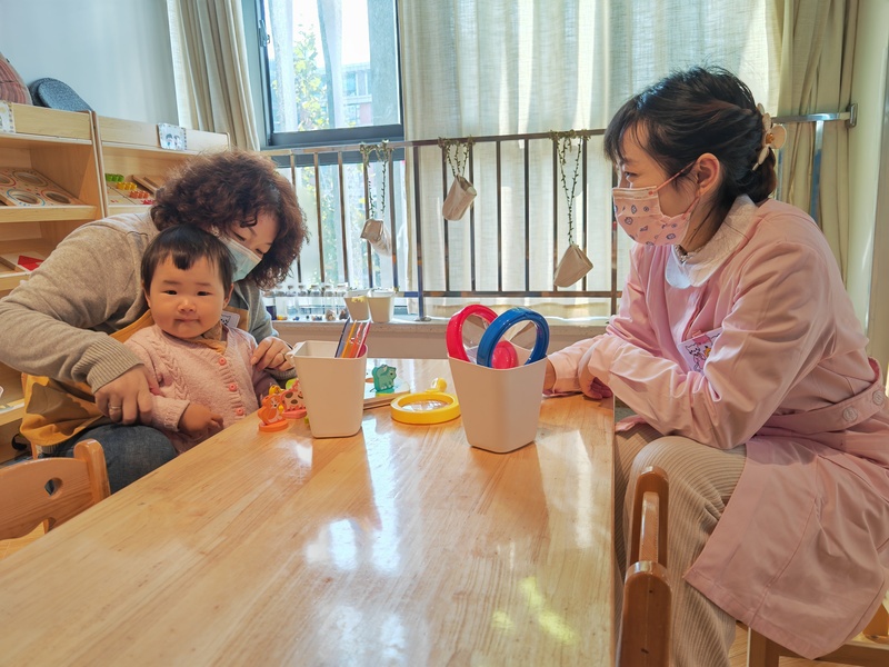 “宝宝屋1到3岁宝宝都接受,属于混龄养育方式,也就需要不同方法。”宝宝屋负责人、古力古利托育园园长周文静,系上海师范大学学前教育专业硕士毕业,但她不仅走进开大总校参加过园长培训,而且还“选修”过保健老师培训。她认为,科班教育理念先行,而在职培训实用为重,“比如小月龄的淇淇,生活照顾方面的精细性自然更多;而更大月龄的齐齐,则需要有意识地培养自主性,给予她更多成长空间。”