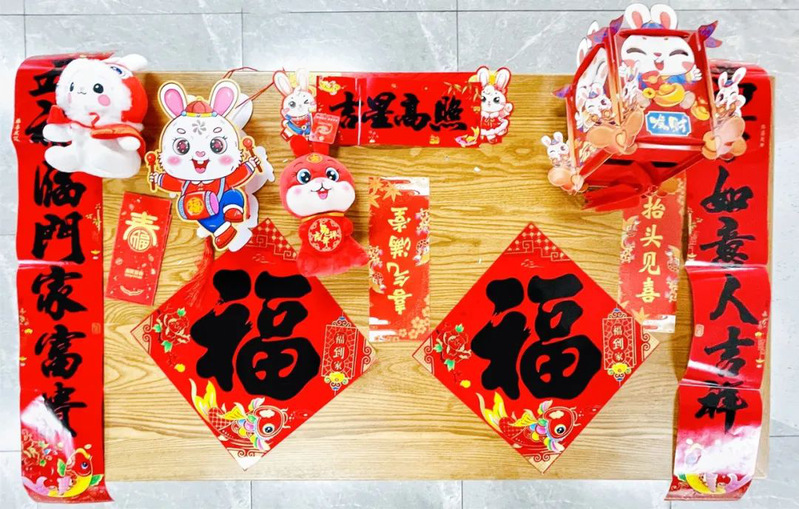 不仅要年味十足,还要让留校学生感受到过节的温暖。后勤保障处精心挑选春联、灯笼及兔年摆件等将各宿舍楼和食堂装饰一新,宿管阿姨在除夕当天向留校学生赠送亲手编织的围巾,让融融暖意萦绕在学生心间。