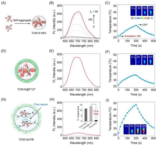 图2.APN策略纳米体系与疏水作用力驱动纳米体系的性能(荧光、光热)