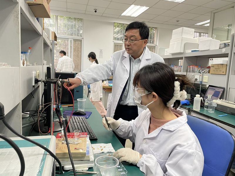 2月10日,蓝闽波在华东理工大学的实验室指导学生。新华社记者郭敬丹 摄