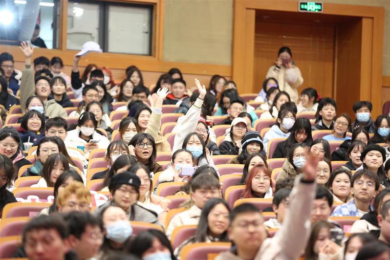 原来,这是在华理奉贤校区800人剧场上演的体艺融合“开学第一课”的一幕。受艺术设计与传媒学院、体育科学与工程学院之邀,《中国乒乓之绝地反击》邓超、俞白眉导演带领师生重温“五虎”故事,学习乒乓精神。