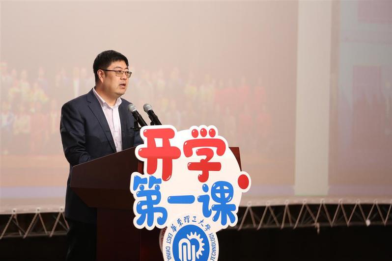 在电影放映前,华东理工大学党委副书记沈海涛带领同学们一同学习了党的二十大精神,回顾了学校建校70年以来的发展历程,展望了学校未来的发展方向。