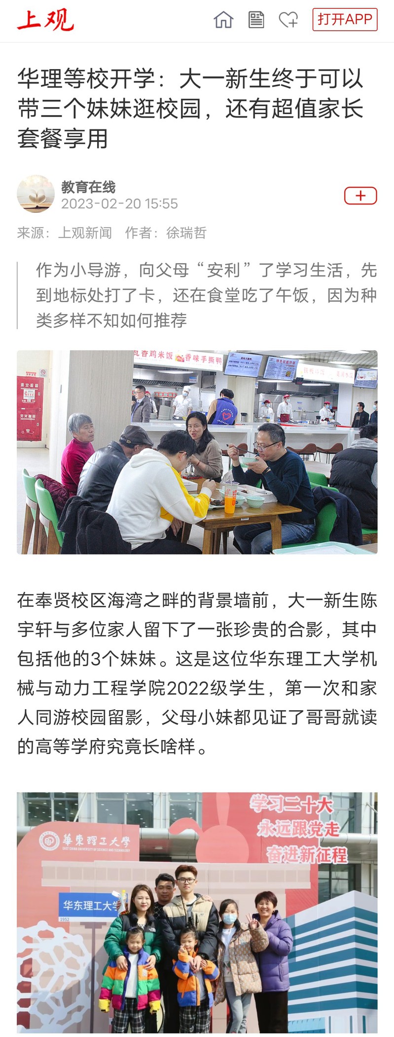 【上观新闻】华理等校开学:大一新生终于可以带三个妹妹逛校园,还有超值家长套餐享用