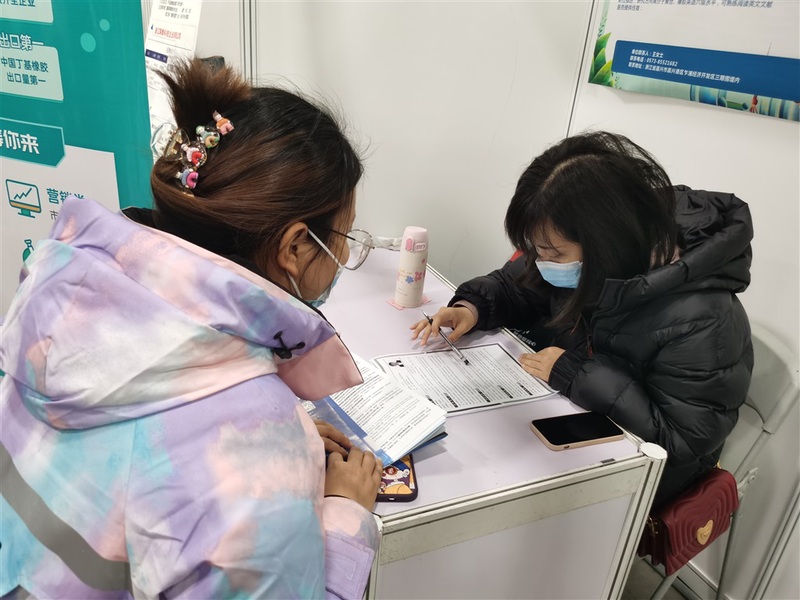 华东理工大学化学学院研究生曹诗达十点左右到达现场,一个小时后才进入招聘会。由于前期都在专心考博,错过了秋招,这是曹诗达人生中参加的第一场大型线下招聘会。同学们大都已经在秋招有所斩获,对他而言,春招是个重要的机会。