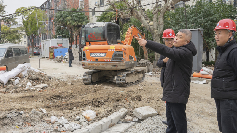 在商学院周边道路施工现场,李涛听取了关于工程进度、施工交通组织、后续绿化布置等情况的汇报。他指出,施工路段属于行人车流密集区域,要求施工单位要关注细节,做好暗沟、碎石、临时设施等的清理,施工时务必保持交通组织流线通畅与行人安全。