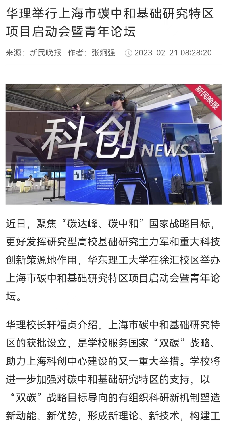 【新民APP】华理举行上海市碳中和基础研究特区项目启动会暨青年论坛