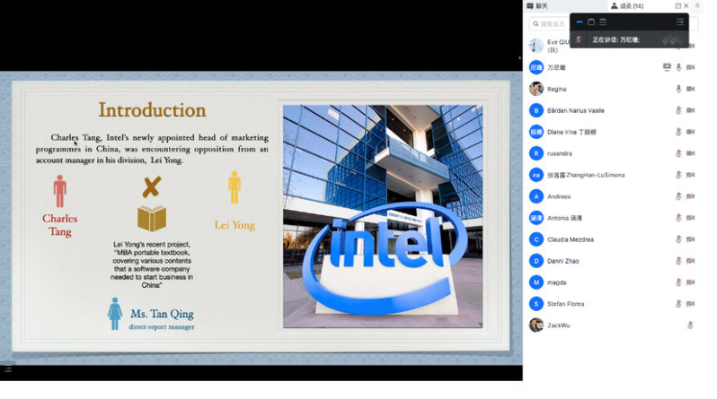 课程结束前,学员们通过小组合作,在网上或图书馆查找资料,对所选中国商业案例进行讨论分析,并最终以小组形式进行了精彩汇报。小组展示结束后,黄庐进进行了反馈并提问,学员们积极回答问题,展现出对中国商务环境的深入理解。
