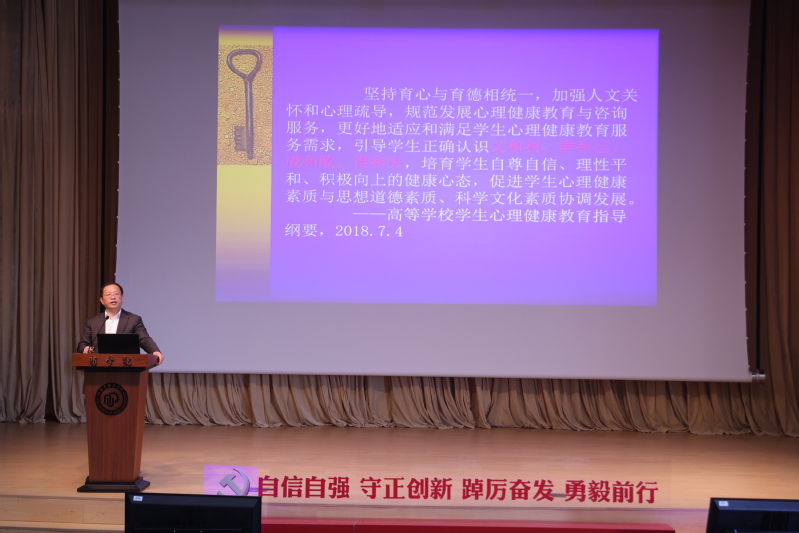 为深入学习宣传贯彻党的二十大精神,落实教育部全国高校学生心理健康教育工作推进会精神,切实加强“三圈三全”心理育人工作格局,本学期开始,学校面向导师、班导师、辅导员推出“赋能提效 为心导航”心理健康教育大讲堂活动。3月3日,学校邀请上海市教育科学研究院院长桑标教授作首场报告。我校副校长李剑出席报告会并致辞,各学院导师、班导师、辅导员、专兼职心理咨询师等150余人参加。报告会由党委研究生工作部部长孙洪锋主持。