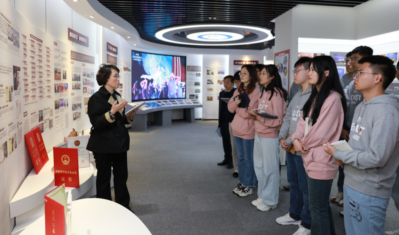 在桃李芬芳•校友风采厅,杜慧芳指出,建校70余年来,学校累计培养了38万余名毕业生,校友中29人当选两院院士,一大批毕业生成为党政机关、企事业单位的中坚和骨干,他们在岗位上积极作为、建功立业,同时也心系学校发展,在疫情期间捐款捐物,在70周年校庆累计捐赠2.15亿元,以实际行动表达了对母校的牵挂和热爱。