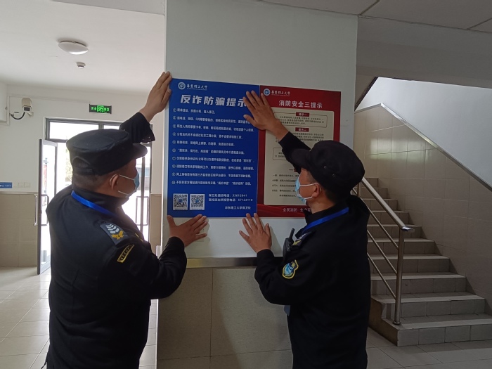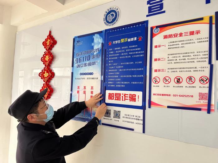 为了进一步增强宣传效果,保卫处对近期高校诈骗案件发生的特点进行分析、整理,针对性地制作了反诈骗宣传海报和防范电信诈骗宣传单,总计印制了3000余份,在徐汇校区和奉贤校区学生宿舍楼公共区域内张贴,将反诈宣传教育活动做到全覆盖,尽最大努力把诈骗案件发生率降到最低,维护师生员工财产安全。