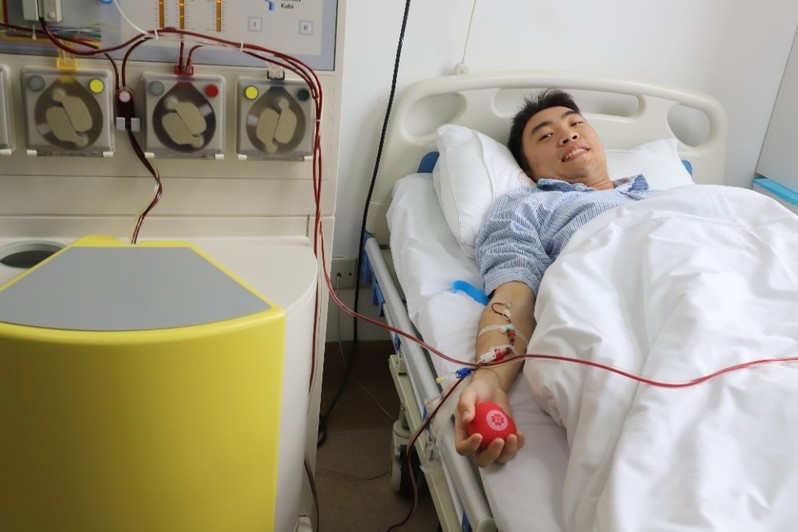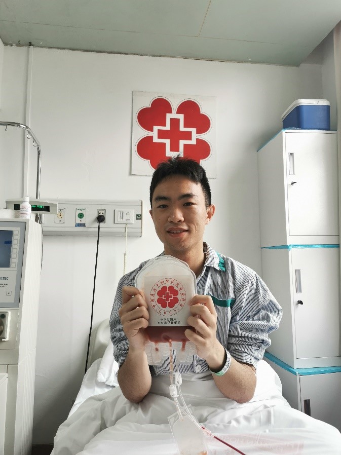 图片说明:“阳光男孩”正在进行造血干细胞捐献