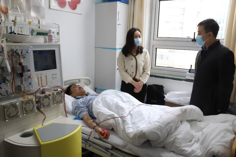 图片说明:“阳光男孩”正在进行造血干细胞捐献