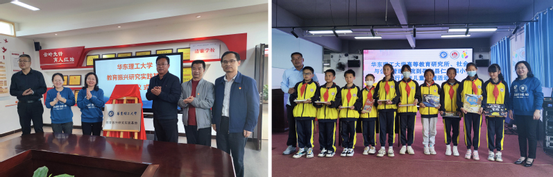 座谈会上,我校高等教育研究所所长周玲教授介绍了学校教育振兴研究情况、长三角教育现代化研究情况,听取了寻甸县教育体育局副局长张兴强关于寻甸县教育发展情况的汇报,就教育规划、教育教学改革、教育服务展开了深入交流。周玲表示,高教所将结合寻甸教育实际,以教育学一级学科点为依托,与寻甸县展开深度合作,共同出谋划策,助推寻甸教育高质量发展。我校社会与公共管理学院党委副书记、高教所导师储琰介绍了社工服务团的有关情况,并与相关学校就后续社工服务展开工作对接。会上,“华东理工大学教育振兴研究实践基地”揭牌仪式和“社会工作服务实践基地”签约仪式举行,调研组还向仁德四小、六哨乡中心学校捐赠了少儿书籍和书包文具。