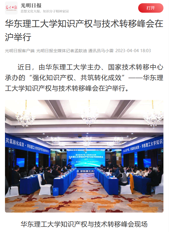 【光明日报客户端】华东理工大学知识产权与技术转移峰会在沪举行