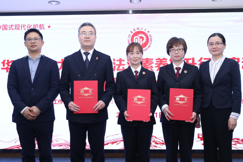 陈庆升介绍了学生法治素养提升行动安排。董溯战宣读名单。启动会为首批校外法治导师代表和学生法治宣传员颁发了聘书。
