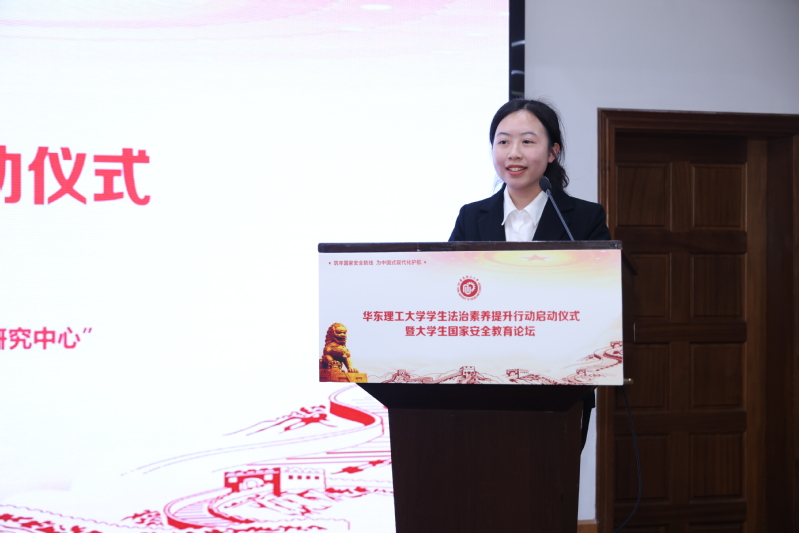4月11日,在4·15全民国家安全教育日到来之际,华东理工大学以“筑牢国家安全防线,为中国式现代化护航”为主题,举行学生法治素养提升行动启动仪式暨大学生国家安全教育论坛,深入开展国家安全宣传教育,引导学生挺膺担当时代新人,共筑国家安全防线。校党委常委、副校长王慧锋,上海市法学会国家安全法律研究会副秘书长巫社广,上海市奉贤区人民检察院检委会专职委员倪莎,上海市黄浦区人民检察院检察官莫苇菁,华东理工大学法律行业校友会秘书长黄超,法学院党委书记丁灏、院长彭德雷,校长办公室(法律事务办公室)副主任董溯战,上海市高校智库“新时代国家安全研究中心”副主任胡兵,党委学生工作部(处)副部(处)长陈庆升,法学院党委副书记周建国,校长办公室法律顾问秦涛出席,仪式由党委学生工作部(处)部(处)长崔姗姗主持。