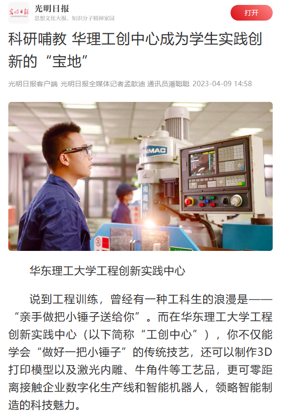 【光明日报客户端】科研哺教 华理工创中心成为学生实践创新的“宝地”