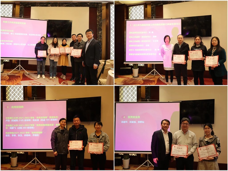 随后,学院对2022年度学院工作优秀基层党支部、换届优秀支部书记、优秀班导师、优秀安全员进行表彰,感谢他们在各自岗位上兢兢业业、无私奉献。会议还安排了新进教职工自我介绍环节,9位青年才俊进行了热情洋溢的自我介绍。他们的加入为机动学院的发展带来新鲜的血液和朝气动力。