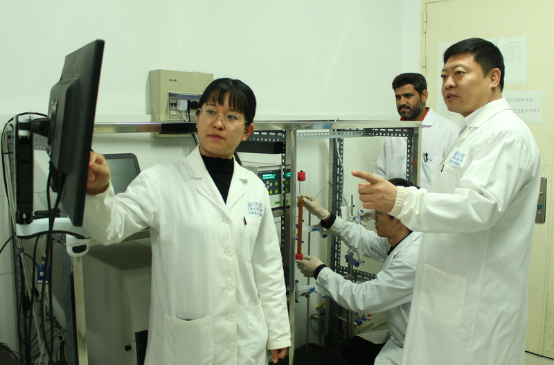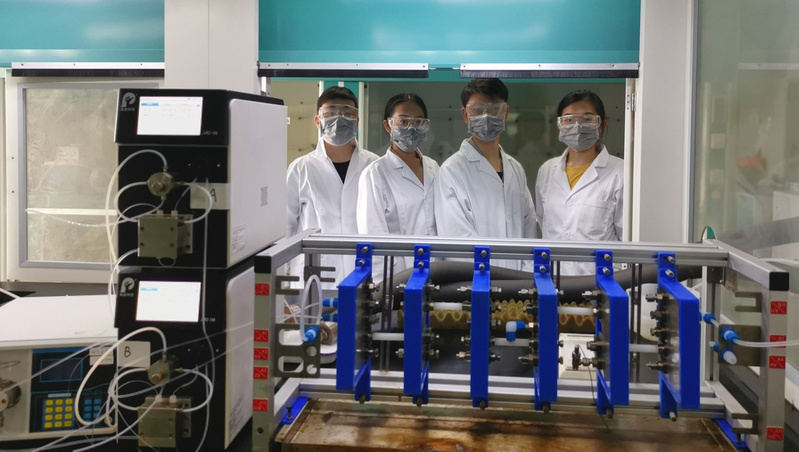 赵黎明教授(右一)带领团队在开展寡糖色谱分离试验。