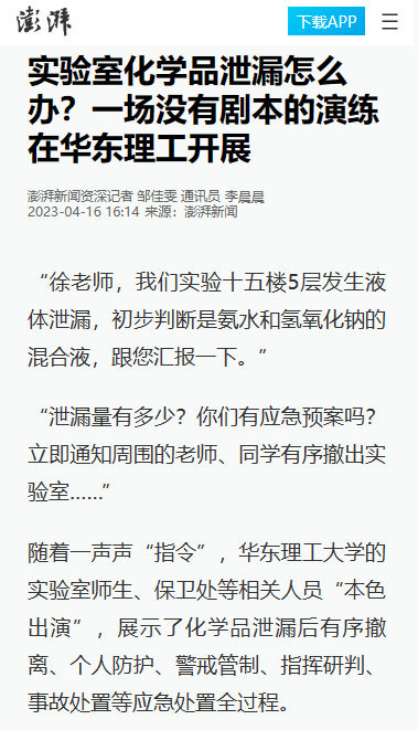 【澎湃新闻】实验室化学品泄漏怎么办?一场没有剧本的演练在华东理工开展
