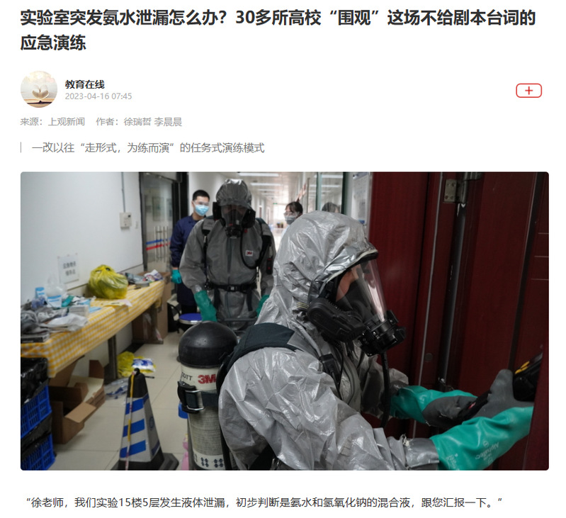 【上观新闻】实验室突发氨水泄漏怎么办?30多所高校“围观”这场不给剧本台词的应急演练