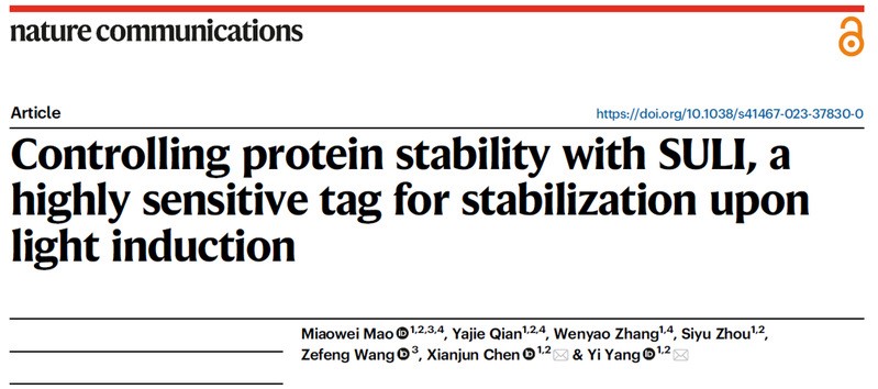 近日,华东理工大学药学院、生物反应器工程国家重点实验室、光遗传学与合成生物学交叉学科研究中心杨弋教授团队在蛋白质光遗传学控制技术研究中取得突破性进展,在国际学术期刊《自然—通讯》上发表了题为“SULI,一种超高灵敏的光诱导蛋白质稳定标签用于调控活细胞蛋白质稳定性”的研究文章。