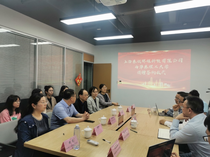 4月19日,华东理工大学“东诚环保”奖学金捐赠签约仪式在上海东诚环保科技有限公司举行。上海东诚环保科技有限公司董事长、资环学院2000届校友周卫华为母校捐赠60万元设立“东诚环保”奖学金,用于奖励资环学院的优秀学生,助力学院发展和人才培养。公司部门经理陈奕澎、王隽哲,华东理工大学校友与发展联络处处长、上海华东理工大学教育发展基金会秘书李建伟,资环学院党委书记修光利、副书记曹娜以及学院本研学生代表出席活动,捐赠仪式由资环学院教师陈继章主持。
