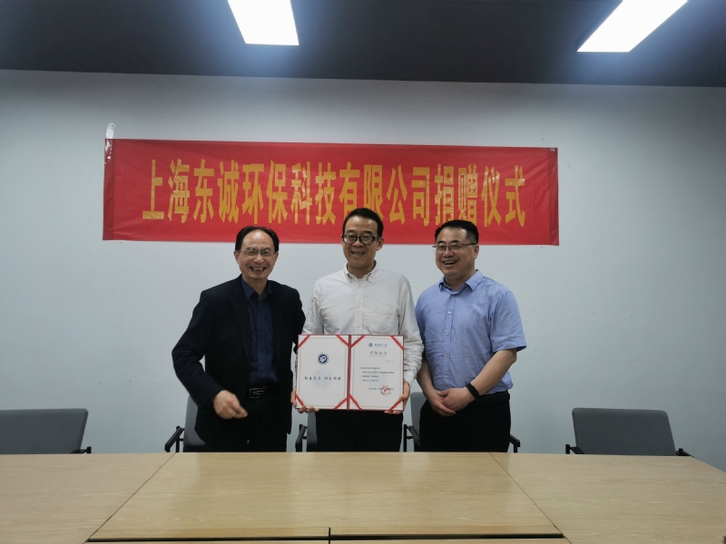 在捐赠方、学校和学院领导以及师生代表的共同见证下三方签订了捐赠协议,李建伟为东诚环保颁发了捐赠证书。