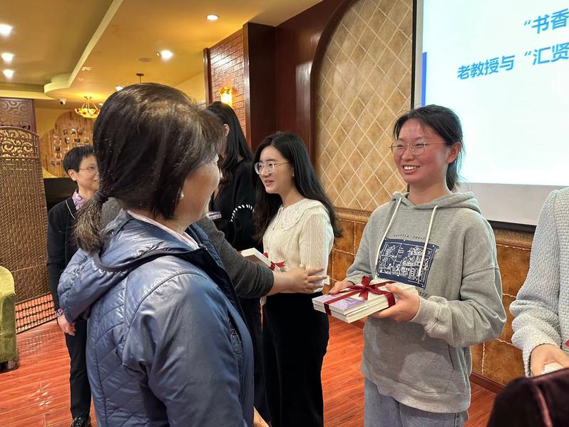 最后,退休教师们为“汇贤计划”辅导员们送上《终身成长》《为思维而教》两本书,激励年轻辅导员不断学习、终身学习,成为有思想的教师,培养会思考的学生,成就有智慧的教育。