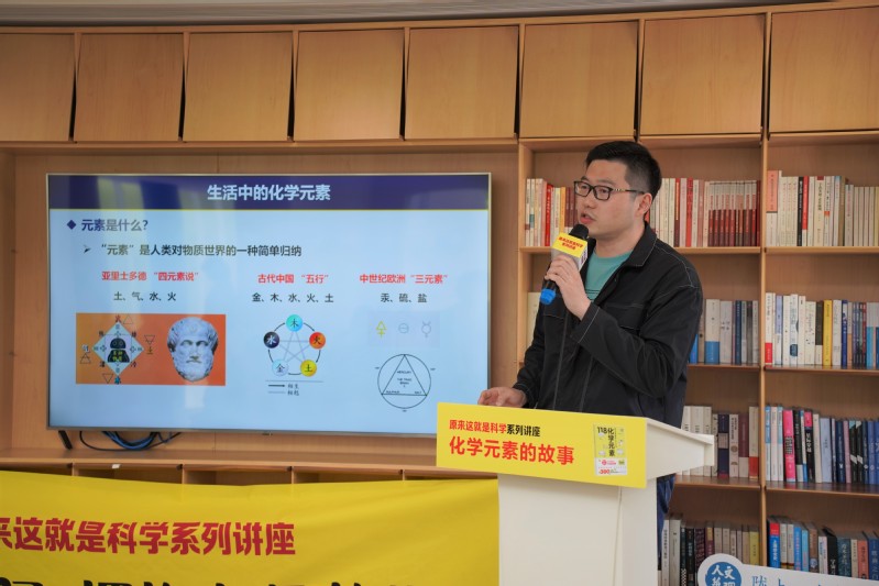 一年之计在于春,春光尚好,是植物汲取养分茁壮成长之时,也是孩子们获取知识的好时节。4月22日,在陇上书店晨园店二楼会议室,一场科普讲座正在进行。为什么说青铜器的出现是中国文明发展的标志之一?秦始皇陵里的汞河真实存在吗?硅在中国古代与现代的文明发展中发挥了哪些作用?为什么说钛元素可以“上九天,下五洋”?《118化学元素》一书作者戴升教授与张馨予带来了华理社“原来这就是科学”系列讲座第一讲“化学元素的故事”,将枯燥的化学元素周期表,结合人类文明,特别是中华文明的发展史,用故事的形式娓娓道来,向在座的孩子们展示化学元素的魅力。