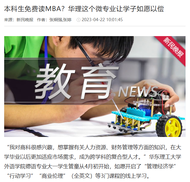【新民晚报APP】本科生免费读MBA?华理这个微专业让学子如愿以偿