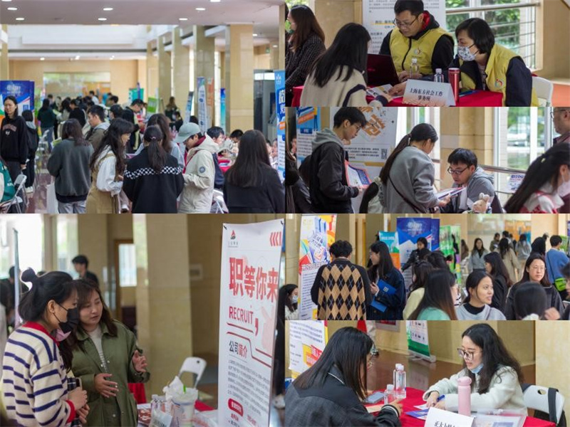 本次专场招聘会突出学院学科特色,充分调动学院教师、校友及各类社会力量,大幅引入重点单位,持续优化专业匹配度,在针对2023届毕业生就业的同时,也为2024届的学生提供了众多实习岗位,帮助学生尽早明晰未来规划。本次招聘会共邀请上海公益社工师事务所、上海东方社会工作事务所、东方财富信息股份有限公司、中建八局发展建设有限公司、中交二航局上海建设工程有限公司、上海学而思教育培训有限公司、上海青创社会服务中心等30家用人单位参加,针对毕业生和在校生推出专业对口度高、发展空间大的百余个工作岗位及实习岗位,吸引大量同学咨询了解、投递简历。