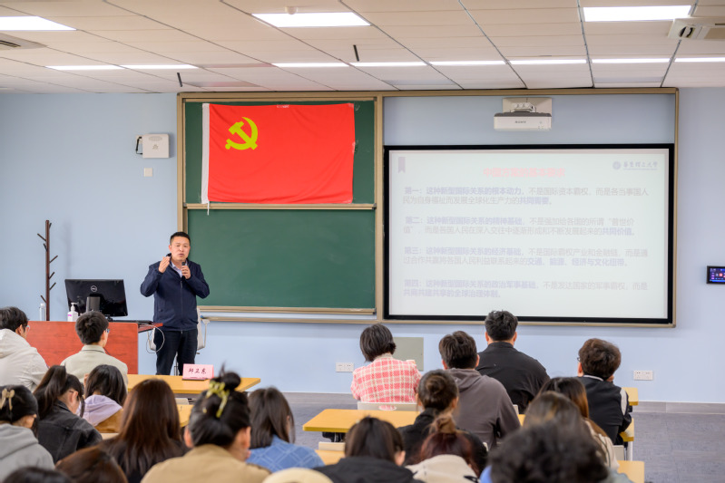 马克思主义学院副院长、星火社指导老师邱卫东教授受邀担任主讲嘉宾,为化工学院师生党员、入党积极分子带来“新时代推动构建人类命运共同体的应有自觉”主题党课。星火社全体骨干、本科生奉贤党支部全体党员、80余名入党积极分子参加活动,活动由辅导员曹妙主持。